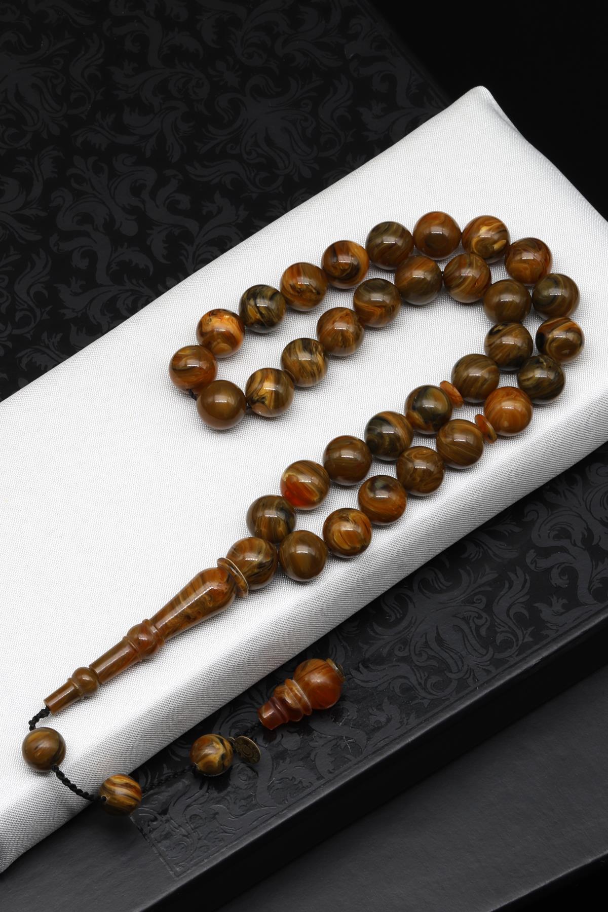 Usta İşçilikli Kahverengi Sıkma Tesbih 10 mm Küre Kesim