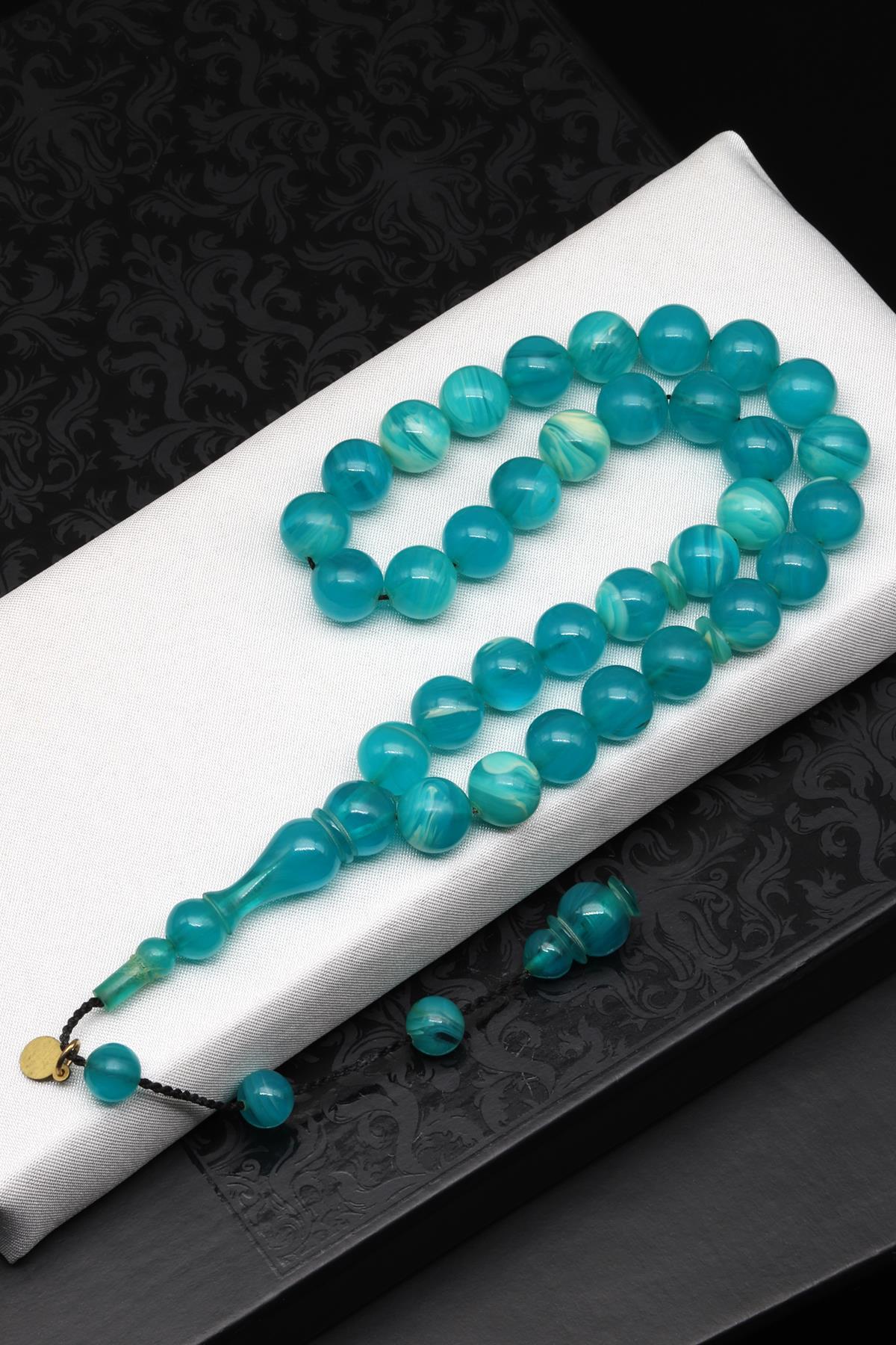 Usta İşçilikli Mavi Sıkma Tesbih 10 mm Küre Kesim