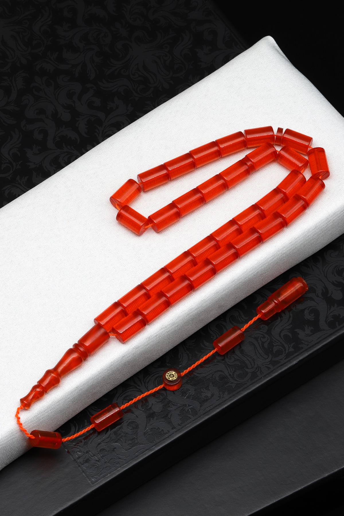 Usta İşçilikli Turuncu Sıkma Tesbih 6 x 10 mm Silindir Kesim