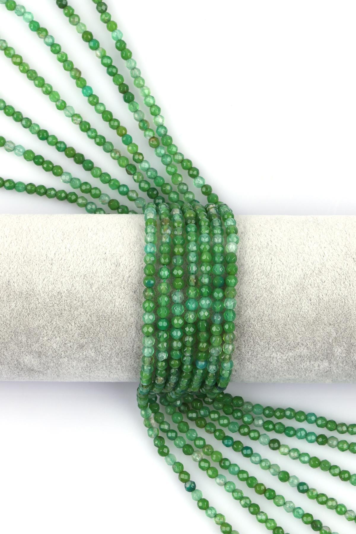 Yeşil Akik Doğal Taş Dizi 4 mm Fasetli Küre Kesim