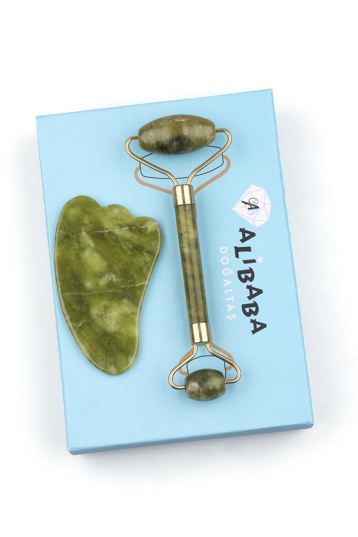 Yeşim Doğal Taş 2’li Özel Kutulu Set Face Roller + Gua Sha Masaj Taşı