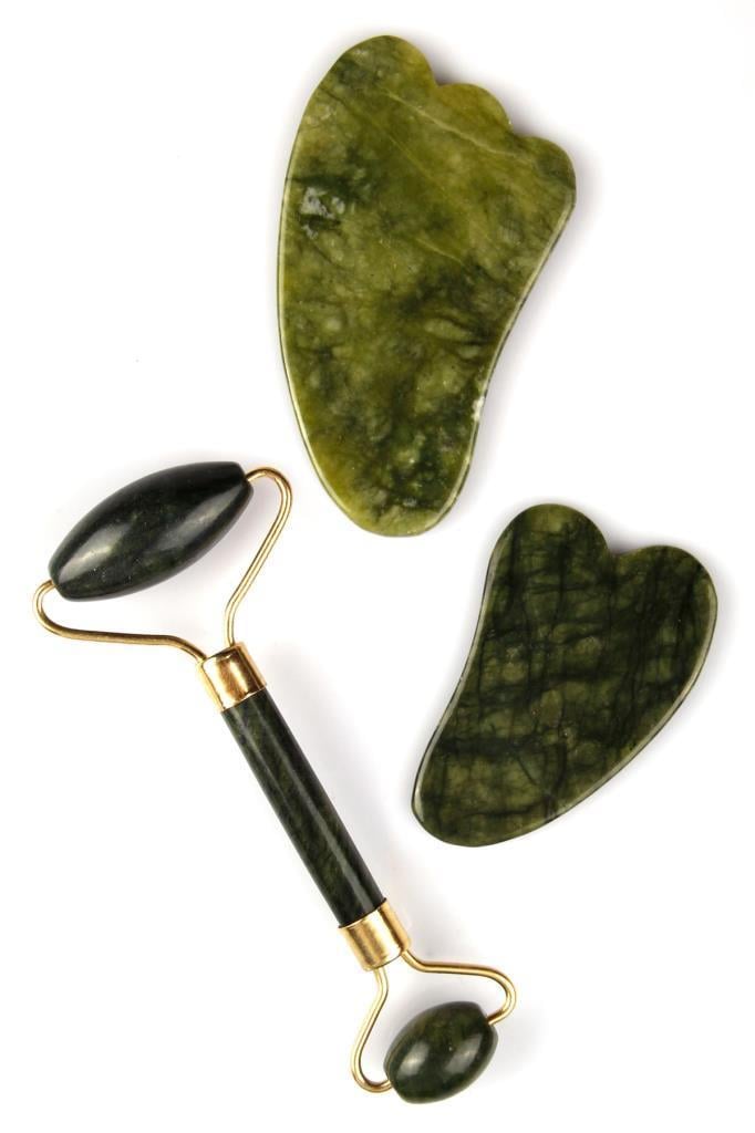 Yeşim Doğal Taş 3'lü Set Face Roller ve Gua Sha Yüz Masaj Taşı