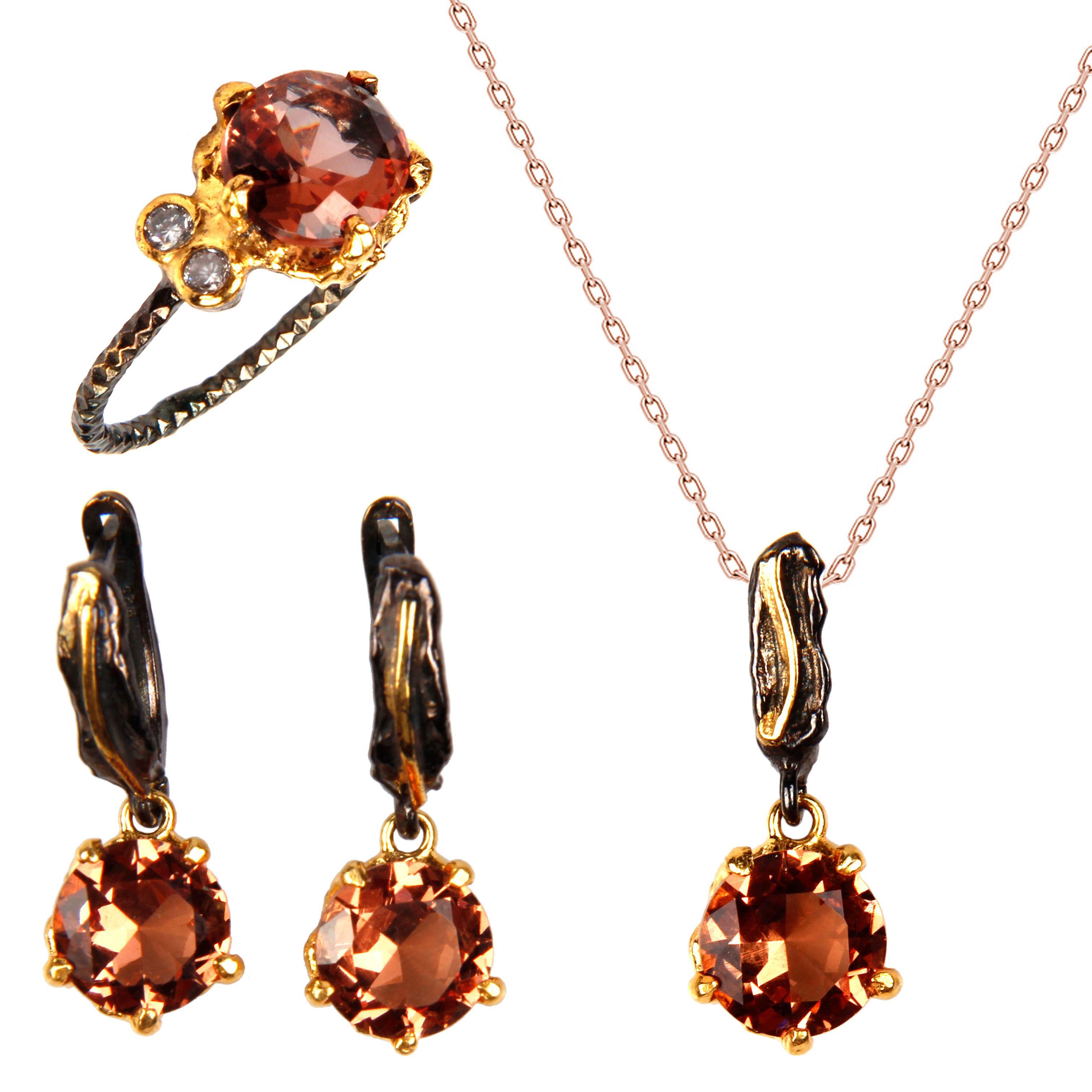 Zultanit Kolye - Küpe - Yüzük 925 Ayar Gümüş 3'lü Set (GMS-0030-01)
