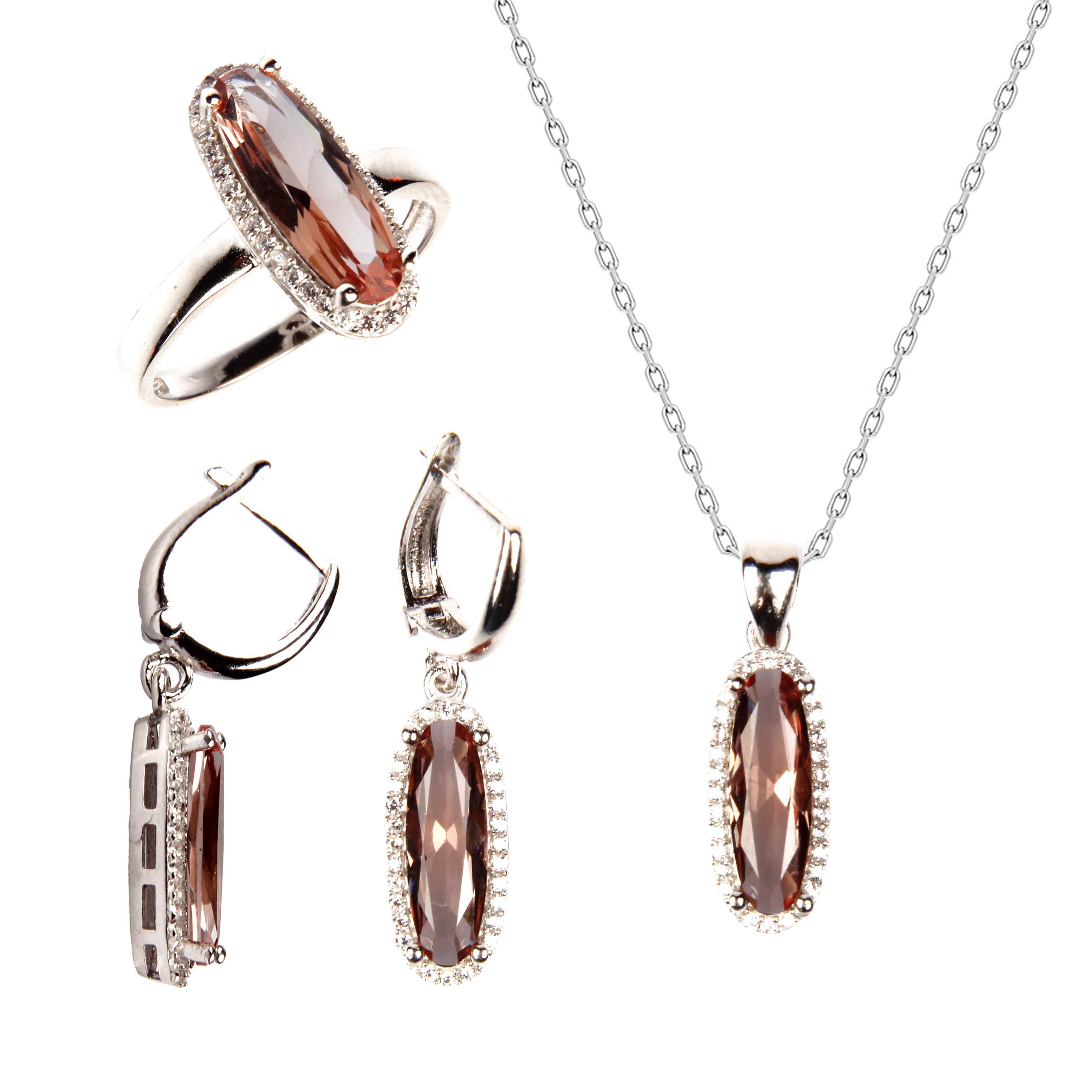 Zultanit Kolye - Küpe - Yüzük 925 Ayar Gümüş 3'lü Set (YZK-0060-03)